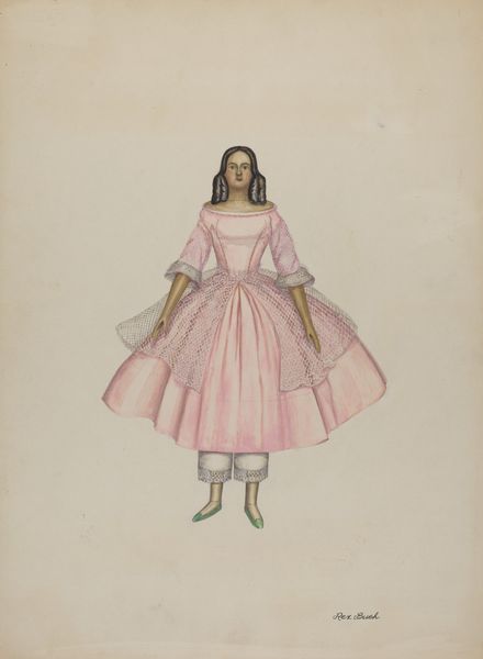 Hans Mangelsdorf made this watercolor painting, called "Doll," and it feels like a quiet observation, a world softly rendered. The overall color is muted, and the effect is somewhat ghostly, in a way that feels both gentle and unnerving. Look closely, and you can see how the paint has bled into the paper. In places, the colour is thinly applied so that it creates soft, mottled effects. It’s interesting to note how the orange polka dots on the doll’s dress and face and even on her hair are so uniformly applied. The artist has taken care with the mark making, yet the face of the doll seems slightly blurred, as if seen through a gauze. This combination of softness and precision reminds me of other self-taught or folk artists who worked with a similar sense of freedom and restraint. It's an example of how art can embrace imperfection.