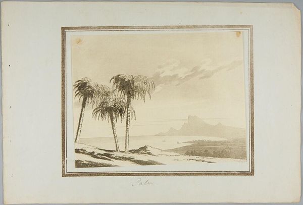 Curator: This is Paul Sandby's "Pimble Meer", currently residing at the Harvard Art Museums. It's a sepia-toned print that captures a serene lakeside scene. Editor: It evokes a sense of tranquility and quiet observation; the monochromatic palette almost abstracts the scene, inviting a more introspective viewing. Curator: Sandby was instrumental in establishing watercolor as a legitimate art form in Britain; here, we see him experimenting with printmaking to broaden access to landscape imagery. Consider the political and social implications of democratizing art through print. Editor: The figures are small and unassuming, dwarfed by the landscape; it speaks to humanity's relationship with nature, our place within it. Do we see ourselves as stewards or exploiters, considering the historical context? Curator: The picturesque aesthetic was very much in vogue. Sandby's landscapes often served as both artistic expression and documentation of Britain’s changing landscape, and how those changes affected the lives of common people. Editor: Absolutely, and it's a reminder of how landscapes can be both personal and political, reflecting broader social and environmental concerns. Curator: A fascinating piece to consider, wouldn't you agree? Editor: I certainly do.