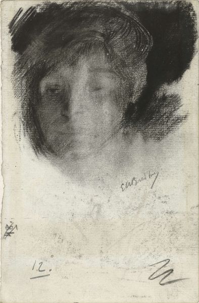 Editor: Here we have Jan Toorop's self-portrait from 1882, a charcoal and pencil drawing held here at the Rijksmuseum. It's quite somber and sketch-like. What do you see in this piece, particularly regarding the materiality of the work? Curator: What strikes me is the overt display of the working process. The visible strokes of charcoal and pencil are not just means to an end but become central to the work's aesthetic. Toorop highlights the labor involved in creation. How does that resonate with his later adoption of symbolism and Art Nouveau, considering the laborious, almost manufactured aspect of those styles, moving from naturalistic depiction to ornamental construction? Editor: That’s an interesting point, this feels almost like a study. Does this focus on process also suggest a comment on the artist's identity? The self-portrait becomes less about a likeness and more about the act of self-representation. Curator: Precisely. The chosen medium, the roughness of the marks, speaks to a self-fashioning. It is not merely an image but a constructed idea, reflecting a challenge to the commodification of the artist’s image. What do you think the rough strokes convey about the contemporary ideas of artistic skill and labor? Editor: It feels almost anti-establishment, in a way. Almost like Toorop is democratizing the artistic process. It's a refreshing view on self-portraiture. Curator: It disrupts the traditional notion of artistic genius as effortless creation. By showcasing the work, Toorop elevates the craft and questions what constitutes 'high' art. A powerful message, presented via such humble materials. Editor: It really does make you consider the materials and process in art, even beyond the final image. Thanks! Curator: Indeed! A reminder that art is always a product of labor, choices, and materials.