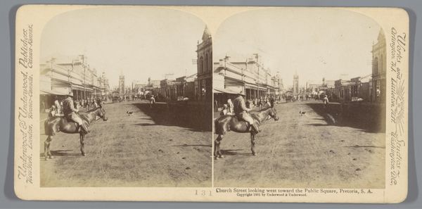 This early photograph, titled Noordzeekust, Frankrijk, by Photographie Artistique, captures a coastal scene in France using the wet collodion process, a complex technique involving coating a glass plate with light-sensitive chemicals. The image's sepia tone arises from the silver particles suspended in the collodion emulsion, giving it a soft, ethereal quality. The process demanded considerable skill in mixing chemicals, coating the plate evenly, and precise timing in exposure and development. This particular method also marks a shift in photographic practice, as it allowed for the creation of multiple prints from a single negative. The photograph not only presents a visual record but also serves as a time capsule, revealing the social context of leisure and tourism in coastal France. The beachfront is lined with modest beach huts that would have been fabricated locally and offered as a service to tourists who had the means to visit the seaside. Ultimately, by examining the materials, process, and social context, this image challenges the perceived hierarchy between art and documentation, inviting viewers to consider the broader cultural significance of photographic representation.