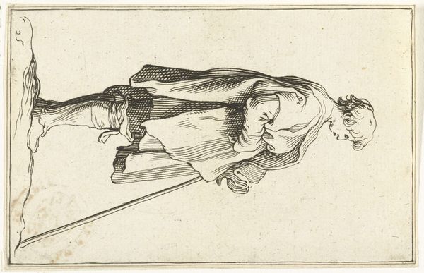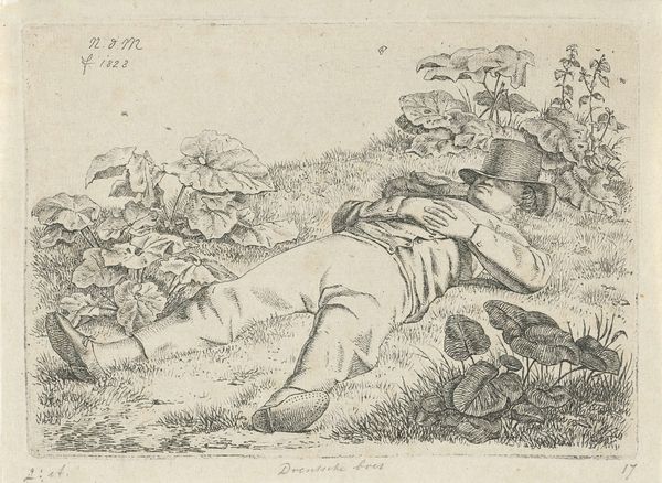 This is 'Liggende jongen', or 'Reclining Boy', an etching made around 1828 by the Dutch artist Anthonie Willem Hendrik Nolthenius de Man. The artist here appears to be taking a rare opportunity to depict working-class life. Note how the boy is dressed in simple clothing and reclines in an open field. Consider the time in which this image was made. This was a period in which the Netherlands was undergoing significant social and economic change. The rise of industrialization and urbanization was leading to new forms of social inequality and poverty. How did the artist perceive these changes? Did he seek to critique these social inequalities or rather to reinforce dominant social norms? Understanding the artwork's place within the social and institutional context of 19th-century Dutch society can open up new possibilities for interpretation. Research into the artist's biography, contemporary social conditions, and the institutional history of Dutch art at this time, can help us gain a more nuanced understanding of this etching.