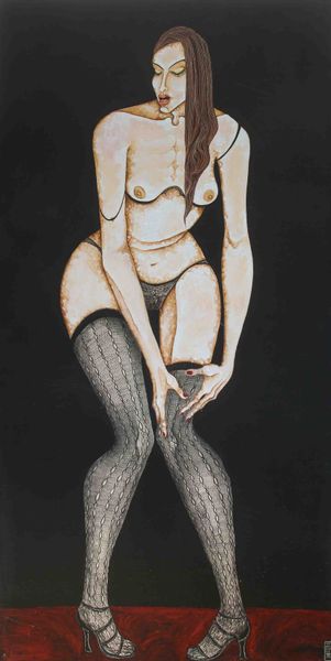 Editor: Here we have Salvador Dali's "Publicité pour Bryan Hosiery" from 1946, a mixed-media piece incorporating watercolor. The immediate impression is of fragmented classicism and surreal juxtapositions, of course, given it's Dali. Legs in hosiery acting as architectural supports… How do you interpret this work from a formalist perspective? Curator: Indeed. Let us examine the arrangement. The composition displays a clear emphasis on layering. Legs clad in hosiery are rendered in meticulous detail, contrasted by looser, watercolour depictions of classical ruins and allegorical figures in the background. Consider the stark tonal contrasts and how Dali interweaves these representational approaches within a limited palette. Do you notice how the linear precision of the legs contrasts with the atmospheric fluidity of the landscape? Editor: Yes, the legs almost seem like hyperrealistic collages, completely separate from the softer background. The texture on the legs and their strange intersection points feel like he wants to expose and destabilize formal structure of an idealized landscape. Is it also just jarring and funny, despite what one thinks? Curator: "Funny" is an understandable subjective assessment, but for an objective and close viewing: Dali masterfully disrupts our expectations of form and function. Legs, conventionally associated with movement and the corporeal, become structural supports reminiscent of classical columns. Note the textures. Observe how their surface mimics stone, which effectively marries the organic with the inorganic. The layering creates spatial ambiguities challenging any coherent reading of pictorial space, drawing attention to the very artifice of representation. Editor: I see. So it's less about the historical references or hidden symbolism, and more about the dialogue created by these visual juxtapositions of texture, form, and medium. Thanks, that clarifies my understanding immensely! Curator: Precisely. Form takes precedence in Dali's deliberate orchestration, transforming the intended function of commercial imagery through surrealist sensibilities. Editor: Well, this breakdown was really revealing, showcasing how close scrutiny of form alone unlocks richer layers of intention and interpretation!