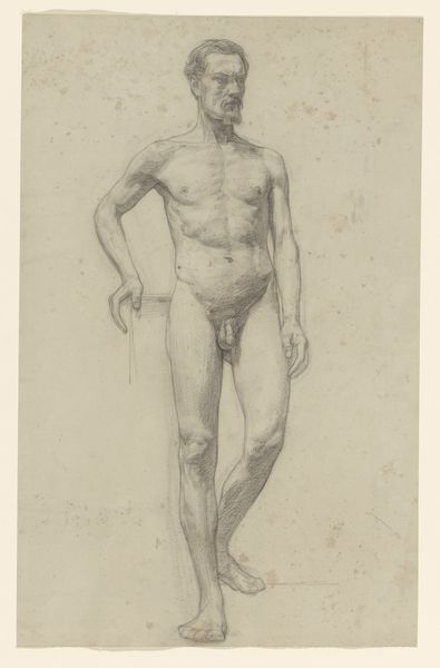 Edward Burne-Jones made this pencil drawing, titled "Back View of Standing Male Nude," during his career as one of Britain’s leading Pre-Raphaelite artists. The male nude in art carries a heavy weight of cultural meaning. Throughout the nineteenth century, the display of male bodies was controversial, with some critics deeming them immoral. In a culture that prized male power, the male nude was seen as a celebration of physical perfection and the ideal form, inherited from the classical world. Burne-Jones was fascinated by classical antiquity, and he often looked to the art of ancient Greece and Rome for inspiration. He was also influenced by the Italian Renaissance, and this drawing recalls the figures of Michelangelo. As a historian, I can explore this further by looking at the artist’s letters and sketchbooks, exhibition reviews, and the writings of his contemporaries. Through attention to the social and institutional context, we see how even a seemingly simple sketch touches on complex issues.