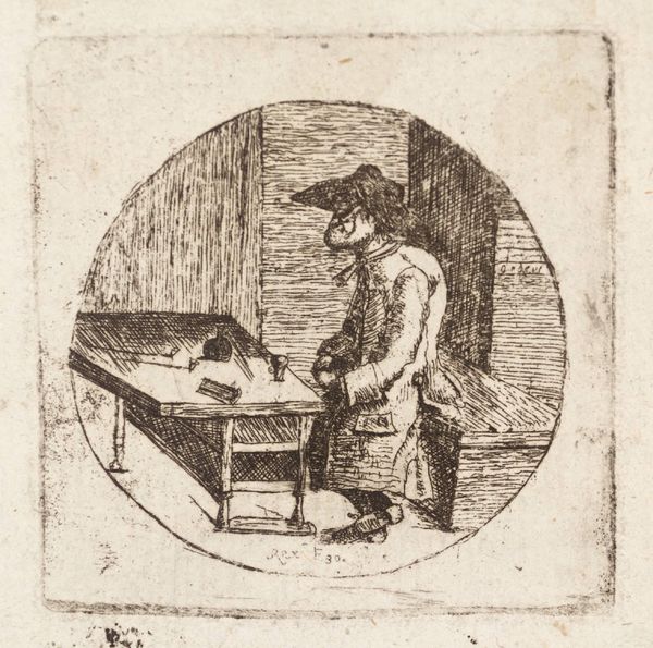 Editor: This is Domenico Beccafumi's "Vulcan at the Forge Making Little Vessels". It's quite striking, a very industrious scene rendered with simple lines. What's your read on this piece? Curator: Seeing Vulcan, the Roman god of fire and metalworking, depicted this way invites us to consider the social status of labor. How does Beccafumi's presentation reflect the societal views of craft and creation during the Renaissance? Does it celebrate or critique the inherent power dynamics? Editor: That's a powerful way of thinking about it. I hadn't considered the social implications of depicting a mythological figure in this manner. Curator: It’s about questioning the narratives we inherit and how art can challenge or reinforce them. Understanding the context allows us to see beyond the surface.