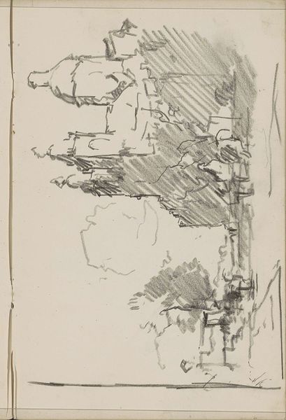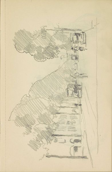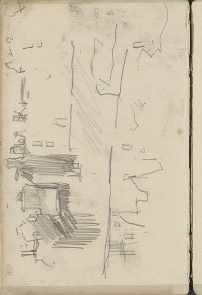 Cornelis Vreedenburgh created this sketch, "Boat at a Quay with Houses," using graphite on paper. The composition presents an immediate and striking visual experience, with the interplay of lines and geometric forms dominating the scene. The marks suggest a bustling waterfront, where the architecture seems to lean and almost merge with the nautical elements. The artist's approach to perspective is intriguing. It's as if Vreedenburgh is not just depicting a scene, but also deconstructing the very idea of pictorial space. The lines and shapes challenge our conventional understanding, creating a sense of dynamism. The use of graphite lends itself to a study in light and shadow, but it also serves to flatten and abstract the image. Vreedenburgh's work transcends mere representation. It's a study in how formal elements can transform our perception of reality. It reflects a broader artistic interest in exploring the limits of representation and how we engage with the world through art.
