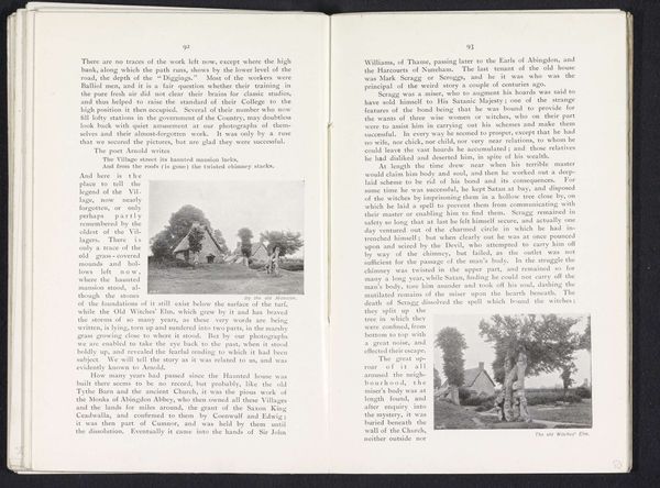 Curator: Editor: This photograph is titled "Jenny Bunting's Parlour," and was taken before 1912 by Henry W. Taunt. It's a small black and white image, a landscape it seems, with the title handwritten underneath. It feels very melancholic, like a scene from a ghost story. How do you interpret this work, considering its time and subject? Curator: It's more than just a pretty picture. The handwritten title "Jenny Bunting's Parlour" situates it within a specific cultural context, one that whispers of folklore and local histories. "Jenny Bunting" evokes ideas about marginalized women. Is this depiction of the landscape itself a commentary on social space, a claim to visibility? Think about whose stories are often left out of the dominant narratives, and how photography, even then, could be a tool for reclaiming those narratives. Who gets to claim space, and how is that power expressed? Editor: That's interesting. I hadn't considered the name as significant beyond just being a location. So you're saying it's less about the place itself, and more about what "Jenny Bunting" represents within that community? Curator: Precisely. The parlor becomes a site of potential resistance, a space connected to a woman who, according to the text on the opposing page, may have been accused of being a witch, a wisewoman or simply existing outside of societal norms. How does photography here lend credence or challenge prevailing gender norms or social hierarchies? Editor: I see it now. The image and text combined invite us to contemplate the narratives surrounding this place, maybe questioning the historical treatment of women and their roles in shaping landscapes, both physical and social. Curator: Yes! And it's important to reflect how the story resonates even now. How are we today participating in making space for marginalized people to shape dominant culture and discourse? Editor: Wow, this photo sparked so many new connections in my brain! I thought it was just a simple landscape photo, but the context gives it a whole new layer of meaning. Curator: Exactly! Engaging with art is about unearthing these layers. Looking at gender, identity and power will make you rethink the world around you.
