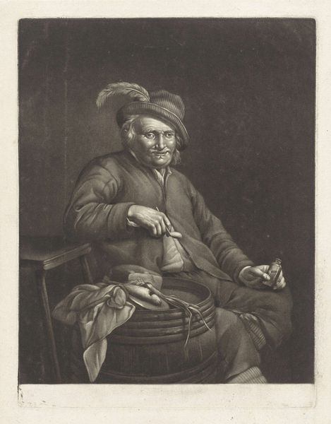 Wallerant Vaillant created this mezzotint, titled "Seated Man with a Jug," sometime in the mid-17th century. The image emerges from the velvety blacks that are so characteristic of the medium. Mezzotint is an intaglio printmaking process, meaning the image is incised into the plate. But unlike etching or engraving, mezzotint begins with the roughening of the entire plate, using a tool called a rocker. If you were to print the plate at this stage, it would be solid black. The image is then created by selectively burnishing areas smooth, so they will hold less ink, creating lighter tones. The present example shows both the strengths and the limitations of this laborious method. Note the fine gradations of tone in the figure's face, and the soft fall of light on his clothing. But also notice the relative lack of sharp definition. Vaillant has given us an intimate, almost tactile rendering of his subject. It’s a testament to the way a particular process can shape an artist’s vision.