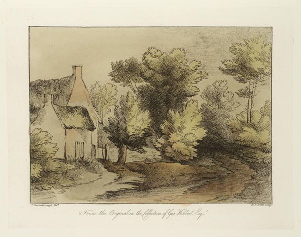 Editor: So, this is Anton Radl's "View of Adolfseck, near Bad Schwalbach." It's a watercolor, and though undated, Radl was born in 1774. The color palette feels muted, almost melancholic. What symbols or visual cues stand out to you in this piece? Curator: Note how the buildings stand guard on either side, symbols of established order. Yet, the flowing water hints at constant change, a tension perhaps? Radl gives us a dialogue between permanence and fleeting moments. How does this resonate with you, especially considering the socio-political landscape of the time? Editor: I hadn't considered that tension, but it definitely adds another layer to my understanding. Thanks for pointing that out! Curator: The architecture may be meant to be more aspirational than truly realistic, and its interplay with nature shows the imprint of memory on the landscape. It's fascinating how the past lives in the present.