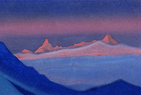 Nicholas Roerich, a Russian artist, painted "Himalayas" during a period of intense spiritual seeking and exploration of Eastern cultures. Roerich's travels through Asia, deeply influenced by theosophy and a desire to find a unifying spiritual truth, are imprinted on this canvas. The Himalayas, for Roerich, were not just a geographical location, but a sacred space resonating with profound spiritual energy. His paintings often feature simplified forms and a vibrant color palette, reflecting a utopian vision of harmony between humanity and nature. The cool blues and whites capture the ethereal quality of the mountain range, evoking a sense of transcendence. Roerich saw art as a bridge between cultures, and "Himalayas" embodies this belief, inviting viewers to contemplate the spiritual dimensions of landscape. The painting’s serene and majestic depiction of the mountains serves as a visual metaphor for inner peace and enlightenment. The artist once said, "Art unites all. Art is one.” Consider how Roerich transcends the traditional landscape genre to communicate a deeply personal and universally resonant spiritual experience.