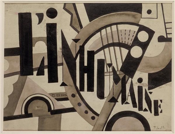 Curator: Let’s turn our attention to László Moholy-Nagy’s “Hídak [Bridges],” a mixed-media collage created around 1921. The piece incorporates watercolor, printed elements, and typography on paper. What strikes you about it initially? Editor: The sheer dynamism, first and foremost. There's a sense of kinetic energy; diagonals crisscross the frame, and the bridge fragments seem poised for movement or even collapse. It's also visually fragmented, yet feels meticulously organized. Curator: That inherent tension you’re picking up on is key. Remember, Moholy-Nagy was deeply invested in Constructivism and its utopian ideals, which often wrestled with expressing the modern industrial world. The bridge, in this context, operates as a powerful metaphor. Editor: Right, infrastructure and connectivity, essential for social and industrial progress. But is it truly progress if the whole structure is visually precarious? I wonder about the red letterforms. "ES," "T," and "K" could function as radical slogans related to socialism at the time? It reminds me of how political movements often reclaimed established symbols or slogans and repurposed their meanings. Curator: Precisely. The inclusion of lettering invites linguistic associations that disrupt the purely visual. The work functions within and challenges societal shifts in a way that pushes art history’s boundaries of understanding art’s significance. Considering it comes on the heels of World War I and the collapse of empires, this deconstructed bridge reflects a fractured sense of hope and perhaps even disillusionment. Editor: I’m thinking of the relationship between abstraction and function as well. He shows us fragments of bridges; we know they exist and understand their purpose. Curator: Moholy-Nagy presents those fragments through the visual languages available to him – modernist abstraction, collage. "Bridges" represents his exploration of visual media. I find the tension inherent in that artistic inquiry truly gripping. Editor: And it still feels very relevant to discussions we’re having about infrastructure, connectivity, and societal divides today. Curator: Absolutely, it remains an incredible piece. Thanks for lending your thoughts to it. Editor: A pleasure; its fragmented vision is certainly thought-provoking.