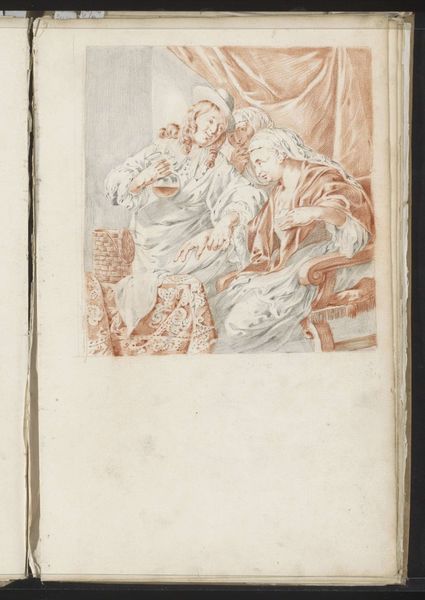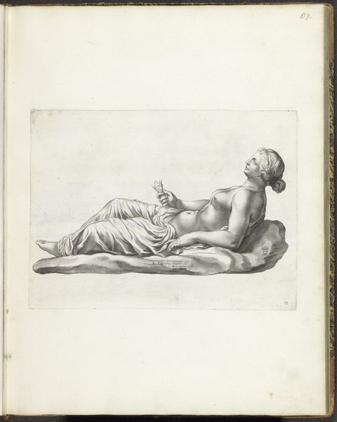 This black chalk drawing by Cornelis Bloemaert presents a reclining river god. The figure, rendered in detailed linework, emanates both power and serenity, inviting an emotional response through its carefully balanced composition. Bloemaert employs classical motifs to explore themes of nature, divinity, and the human form. The river god's pose, seemingly relaxed yet subtly dynamic, disrupts traditional artistic expectations. The tension between the god’s muscular physique and his languid posture is palpable, creating a semiotic interplay. The drawing also challenges fixed meanings. The god's body is both idealized and naturalistic. The rough texture of the rock contrasts with the smoothness of his skin. In this way, Bloemaert destabilizes conventional artistic categories. The artwork becomes a site of ongoing interpretation, urging us to reconsider our understanding of the body and its cultural significance.