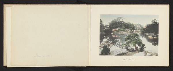Editor: We're looking at a print called "Gezicht op de Koraku-en tuinen in Tokyo, Japan" - or, a View of the Koraku-en Gardens in Tokyo, Japan - by Kazumasa Ogawa, created before 1893. It’s a landscape photograph of what appears to be a tranquil pond, spanned by a small bridge, with lush foliage all around. It feels very… wistful, somehow. What strikes you most about it? Curator: Oh, this is delicious! That sense of wistful tranquility you nailed is exactly the kind of emotion these carefully cultivated Japanese gardens aimed to inspire. Ogawa captures not just a place, but a mood. Notice how the soft, almost dreamlike quality of the photograph emphasizes the reflection on the water's surface? What does that mirroring suggest to you? Editor: Well, it creates a sense of depth, almost like looking into another world. But also a little unstable – as if what you see isn't quite real. Curator: Precisely! It's that tension, that delicate balance between the real and the ephemeral, that makes this more than just a pretty picture. Ogawa was working at a time when Japonisme was all the rage in the West – this fascination with Japanese art and design. He's not just documenting a scene; he's offering a glimpse into a different way of seeing the world. A way that valued harmony, balance, and quiet contemplation. Editor: So it's about capturing a specific feeling and sharing a cultural perspective at the same time. I hadn’t thought about that. Curator: Indeed. Next time you see a reflection, maybe you'll think of Ogawa, and how he taught us to look beyond the surface and find beauty in the transient. Editor: I definitely will. Thanks, that was a really insightful view.