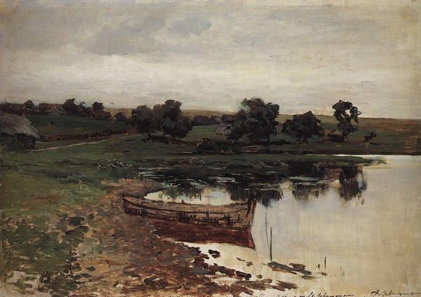 Here we have Charles-François Daubigny's "Boat on a Pond", an oil painting that captures the tranquil essence of the French countryside. The eye is drawn to the surface of the pond, where gentle ripples reflect the soft, diffused light of the sky. Daubigny's brushwork here is remarkably free and expressive, with strokes that seem to breathe life into the trees and water. This evokes a sense of immediacy, as if the scene were captured in a fleeting moment. But look closer at the composition. The careful arrangement of trees and the subtle placement of the boat create a delicate balance. This invites the viewer to contemplate the relationship between nature and human presence. Daubigny's work challenged the established conventions of academic painting. It anticipates the more radical innovations of Impressionism. The focus on capturing the transient effects of light and atmosphere points to a broader shift in artistic and philosophical concerns. The painting is less about depicting a specific place and more about conveying a sensory experience. It embraces a new way of thinking about perception and representation.