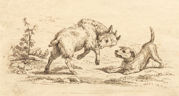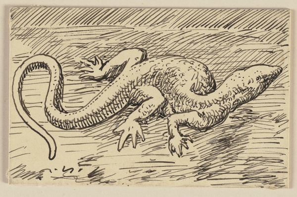 Curator: Here we have "The War Between the Frogs and Mice 02," a drawing by Theodor Kittelsen, made in 1885 using ink and pen. It seems…ominous? Editor: Ominous! Is that a first reaction to a frog and a mouse? I find it hilarious, mostly, with that frog so smug in the water. Curator: Well, look at the materials – the stark black ink on white. The heavy lines creating texture, specifically, seem to embody conflict and harshness. Think about what this piece signifies: Kittelsen is taking a classical fable, maybe commenting on class struggles, access to resources, or colonial exploitation? These pen illustrations were relatively easy to reproduce and distribute. Editor: Ah, now you've brought up distribution! I always imagined these stories were meant to warn children—like, don’t make deals with smiling frogs offering river cruises! The lines, you’re right, they’re really… deliberate. Scratchy, almost angry. And that poor mouse looks like it’s having the worst day! Curator: Indeed, Kittelsen uses that intense linework to illustrate hierarchy; it also renders a clear moral in a popular and understandable format for the public’s immediate engagement. Consider how this accessibility broadens discourse, fostering revolutionary thought about societal structures. Editor: Okay, I’ll admit, that deep dive is getting me closer to the "ominous." I’m still chuckling, but there’s a darkness creeping in… Curator: Darkness is precisely what I feel. The dark satire within Kittelsen’s image serves not only a visual delight but also political activism! Editor: I suppose art always finds ways to remind us how ridiculous we can be. Thanks for pointing me away from just seeing the funny frog; there is way more at play in the making and its reach here. Curator: Exactly! It's essential to appreciate the labor of creation, distribution, and social dialogue. Hopefully, it has encouraged deeper viewing for everyone today!