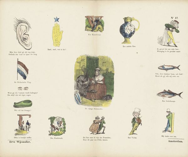 This print by Erve Wijsmuller presents a playful array of illustrated letters, each framing a vignette of everyday life. Consider the barber shop scene, a theater of transformation. Here we see the ritual of cutting hair, but it's more than mere grooming. The barber's tools—scissors and comb—become symbolic instruments, echoing the ancient shears of fate, instruments of change and renewal. We can trace similar acts of transformation through medieval allegories, where a cut of the hair can symbolize the beginning of a new life. The act of shaving has held profound significance across cultures. Think of Samson's strength residing in his hair. The barber shop is where identity is shaped, a reflection of our evolving selves, consciously crafted. It’s a place where one seeks both aesthetic and psychological renewal. This image is more than a scene; it's a mirror reflecting our deep-seated desires for reinvention.