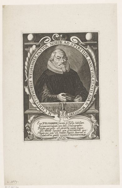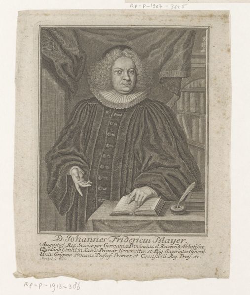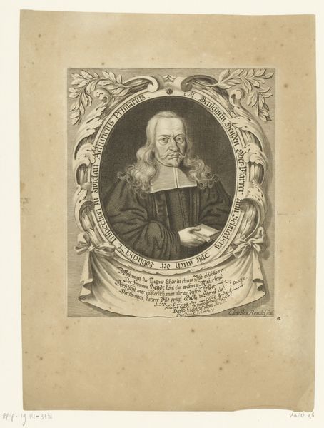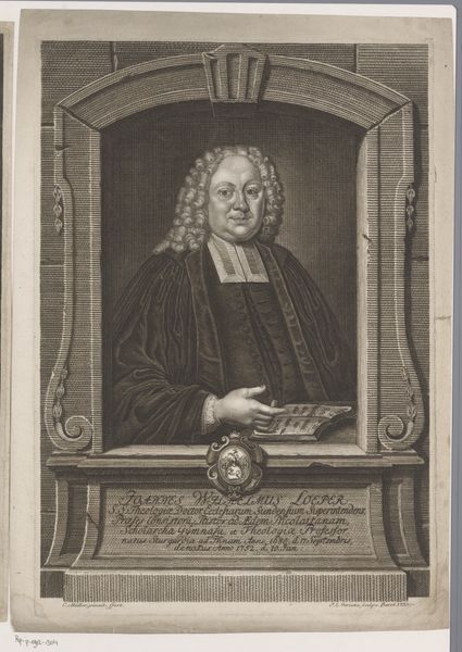 Curator: Materially, this engraving, "Portret van Christoph Tobias Wiedeburg" from 1717, reveals a lot about early 18th-century printmaking practices. The fine lines, the paper quality, even the ink used—they speak to a particular moment in the history of production. Editor: It’s interesting to think about how prints were made then! This one looks really detailed for such an old piece. What does the artistic process involved in creating an engraving like this tell us about society at that time? Curator: Well, consider the labor involved. Someone meticulously carved those lines into a metal plate. Who were these engravers? Were they considered artists or artisans? Their social standing and the economic factors surrounding their work are crucial. Editor: So, it's not just about Wiedeburg; it's also about the maker and the world he lived in? Does the portrait itself have to do with that society too, like the subject wanting to broadcast their status through printed images? Curator: Precisely. This print was probably made for a specific audience and purpose. Who consumed these images, and what did they signify? Was it a commemoration? A display of social standing? An investment, perhaps? How does mass production and distribution factor into it, for whom? Editor: I hadn't thought of it that way before! Curator: Think about the networks of production and consumption. Engravings like this circulated within specific social and economic systems, shaping visual culture in ways we're still unpacking. Editor: So it’s more than just an image, it’s a little piece of socioeconomic history pressed onto paper. That's a great way to look at art.