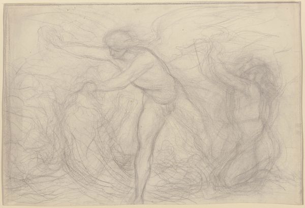 Editor: Here we have Victor Müller’s "Ophelia," a drawing from around 1868 to 1871, currently residing in the Städel Museum. The figure seems almost consumed by the surrounding foliage. What draws your eye to this piece? Curator: The drawing’s production process is particularly interesting. We see Müller's deliberate use of line to evoke the scene and figure rather than definitively depicting them. It encourages us to consider the social context that allows for the romanticizing of Ophelia’s tragic demise in Shakespeare. He’s commodifying this suffering using paper and graphite. Editor: So you see the artistic choices relating directly to social forces at work during its making? Curator: Precisely. Müller uses a readily available and reproducible medium to disseminate a version of Ophelia's death that fits a certain palatable romanticism. Notice the suggestive linework rather than clearly delineated forms—what impact do you think that choice had on its reception? Editor: I hadn’t considered the deliberate *vagueness* of the image as a factor of production! It seems less about fidelity and more about feeling, maybe. Could we then read the relative affordability and replicability of drawings, as opposed to paintings, as further democratizing this image of feminine suffering? Curator: It absolutely opens up that avenue for discussion. And think about the role of the Städel Museum as another layer in that distribution, continuing to curate this consumption. The art becomes not just the *what* but the *how* and the *why* it came to be. Editor: That’s a completely different way of viewing this image! Seeing it as less about artistic genius, and more about artistic labor and its social implications. Curator: Precisely! Looking at art through a materialist lens reminds us of art’s participation in larger networks of labor and capital.