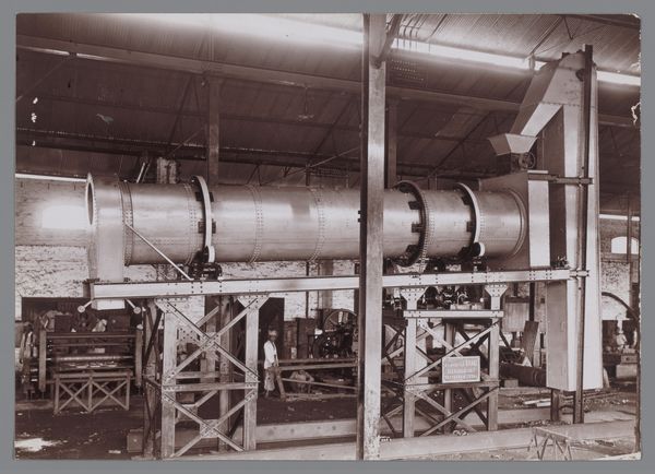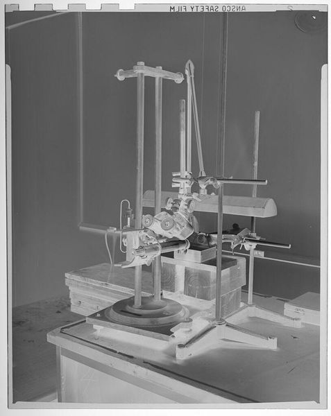 Curator: This is a photograph of a “Scale Model of a Cooking Pan,” dating from around 1917 to 1938, part of the Rijksmuseum’s collection. It presents what appears to be a utilitarian object rendered with sharp, almost alienating precision. Editor: Alienating is spot on. My first thought was "miniature industrial monolith". The high contrast, the repetitive geometric shapes... it feels strangely cold for something meant to evoke a kitchen. Curator: The constructivist style likely contributes to that perceived coldness. It prioritizes form and industrial materials—the metallic sheen, the stark geometry—over any sense of domestic warmth. Notice how the lines intersect and repeat, creating a visual rhythm. Editor: That visual rhythm, those repeating circles on the side... They're compelling, almost hypnotic. This humble kitchen implement transformed into something resembling a futuristic, possibly even ominous, machine. Curator: Precisely. This subversion elevates a common household item to an object of almost unsettling beauty. We are not just looking at a model of a pan, but considering the inherent forms embedded within a commonplace utensil, which evokes mechanical progress in human lives. Editor: And that juxtaposition of domesticity and industry is so fascinating. The cooking pan as a symbol transforms, resonating with the technological optimism, perhaps, of the era, but tinged with a certain anxiety. After all, industrial progress inevitably transforms our most basic, human activities. Curator: Absolutely. By distilling the pan down to its essence, the photographer makes us confront our changing relationship with our most fundamental needs. It challenges the perception that art cannot be derived from functional design and objects. Editor: Well, it certainly disrupted my perception! I came expecting gentle still life, and instead I'm considering societal shifts through the lens—literally—of a kitchen pan. Curator: A worthy transformation, I think, reminding us that everyday objects carry a silent symbolism when examined closely.