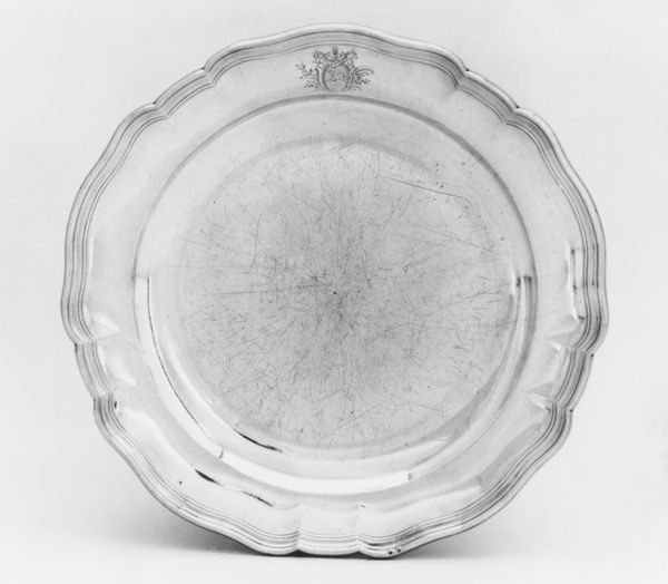This silver dish was crafted by Joseph Le Barbier, a French silversmith active in the 18th century. The dish, an exercise in refined geometry, offers a tactile and visually stimulating experience through its play of light and shadow. Its octagonal shape, precise and symmetrical, is softened by the undulating, fan-like fluting that encircles the inner rim. Note how this textured border contrasts with the smooth, reflective surface of the dish's center, creating a dynamic interplay between the linear and the curvilinear. This tension between stark geometry and fluid texture is a key element in decoding the dish's appeal. The ridges catch the light, casting delicate shadows that emphasize the dish's form. In this period, the rise of rationalism was influencing the decorative arts. Yet, the hand-crafted nature of the fluting introduces an element of the irregular. This dish is not merely functional but acts as a reflector of cultural values about order, luxury and craftsmanship.