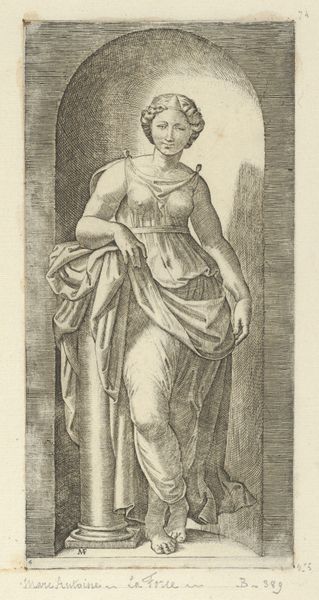 Alexander van Haecken created this mezzotint, “Gehoor” or “Hearing,” sometime in the early 18th century. The composition is dominated by the figure of a woman, centrally placed, her gaze lowered as she holds a mandolin. The tonal gradations achieved through the mezzotint technique lend the image a soft, almost dreamlike quality. The rendering of texture is particularly noteworthy, from the delicate feathers adorning her hair to the folds of the drapery that loosely cover her form. Haecken employs light and shadow to sculpt the figure, creating a sense of volume and depth within the two-dimensional plane. This work functions as an allegory, representing one of the five senses. In its formal construction, Haecken engages with broader artistic concerns of the period, such as the representation of ideal beauty and the exploration of human perception. The print invites a prolonged viewing, during which the interplay of light, texture, and form reveals itself as a site of ongoing interpretation.