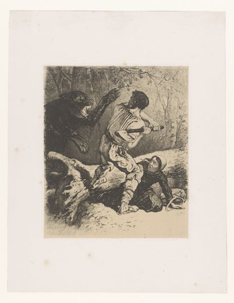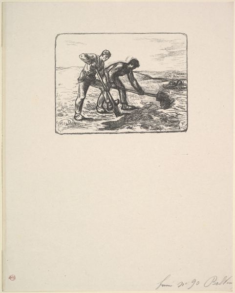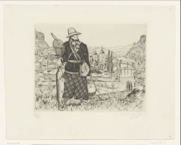 Albert Hahn made this political cartoon about World War I using pencil. The approach to mark making is very direct with clear, concise lines, which contributes to its strong message. The drawing shows two figures standing on what appears to be a battlefield littered with bodies and skulls. The one in uniform gestures out towards the field, while the other figure, cloaked and wearing a spiked helmet, is turned away as if detached from the scene. I think what strikes me is the contrast between the clean lines of the figures and the chaotic, scribbled background that suggests the devastation of war. The texture created by the pencil is stark, which gives the image a raw, immediate feel. It reminds me of the work of artists like Otto Dix, who used a similar visual language to convey the horrors of war, but with an added layer of grotesque humor. Ultimately, Hahn’s cartoon is a powerful statement about the detachment of those in power from the human cost of conflict.