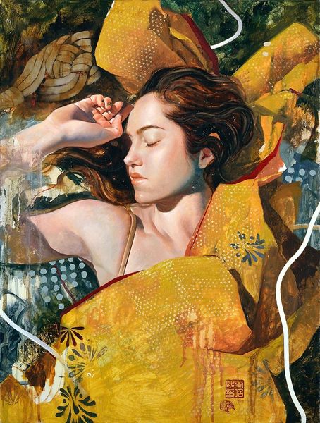 James Jean’s painting, Della, presents us with a young woman amidst a vibrant, almost overwhelming, natural setting. The surrounding flora, rendered in lush detail, echoes the classical motif of the locus amoenus, an idyllic and sheltered place. However, the presence of dripping red paint disrupts this peaceful scene, an echo of blood that recalls the memento mori tradition. This symbol reminds us of the transience of life, a counterpoint to the idealized beauty. Consider its historical counterpart in Caravaggio’s Judith Beheading Holofernes where the act of violence is contrasted with Judith's beauty. It is through such symbols that Jean evokes a sense of unease, tapping into our collective memory and subconscious understanding of beauty's fragility. This juxtaposition engages us on a deeply psychological level, forcing us to confront the duality inherent in existence: the eternal dance between life and death. As such, symbols, detached from their original cultural contexts, have become potent carriers of emotional and psychological truths across centuries.