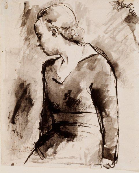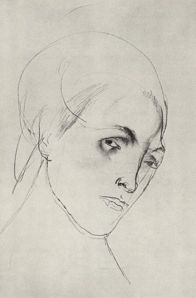 Magnus Enckell created this sketch, titled 'Naisen sivukuva, luonnos' or 'Woman's profile, sketch,' using pencil on paper. Enckell lived during a period of significant social change, including evolving views on gender and sexuality, reflected in his work. The subject here is a woman shown in profile, her gaze directed downwards. The sketch is unfinished, raw, and intimate. It invites us to consider the complexities of female identity in the late 19th and early 20th centuries. Enckell often explored themes of androgyny and homoeroticism, challenging traditional gender roles. While this sketch may appear conventional, the artist's broader body of work encourages us to question whether the woman is simply a passive muse or whether she embodies a more complex, modern sensibility. The woman's expression evokes introspection or perhaps melancholy. Enckell’s ability to capture a moment of quiet contemplation invites us to reflect on the emotional lives of women during this transformative period in history.