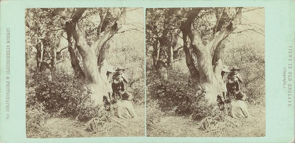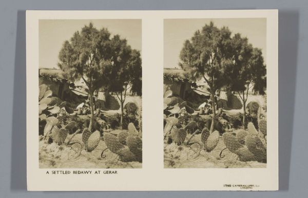 This stereograph, made by Thomas Houseworth, captures a towering cactus in San Jose, California. The composition is dense, almost claustrophobic, dominated by the repetitive shapes of the cactus pads and the tangled undergrowth. The near-monochromatic palette focuses our attention on the textural contrasts between the smooth surfaces of the cactus and the rough foliage. The stereograph was a popular form of entertainment and education, offering viewers a sense of depth and realism. Here, the stereoscopic effect emphasizes the overwhelming scale and exotic nature of the cactus, transforming the plant into an emblem of the American West. Houseworth’s choice of subject matter is not merely botanical documentation but a semiotic encoding of the West as a space of wonder. The structural rigidity and spatial organization are arranged to suggest nature's powerful, untamed force. This image functions as more than just a visual record; it's an artifact embedded with cultural ideas about exploration and environmental power.