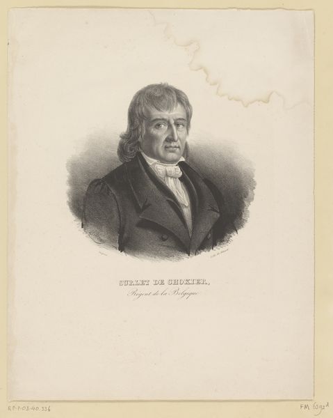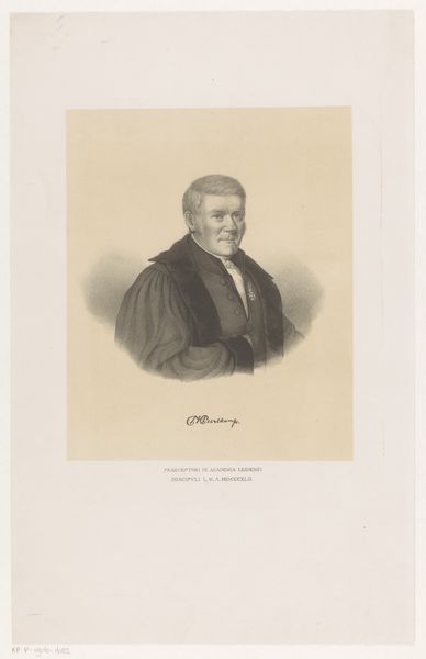 Editor: So, this is Cornelis Bernardus Buijs' engraving, "Portret van Theodorus van Swinderen," dating from around 1844. The subject looks rather stern, almost confrontational. It’s an intense gaze. What’s your take? Curator: You’re right; he does have a rather unwavering stare! I think there's something deeply compelling about the directness in early portraits like this. You see, back then, the idea wasn’t so much to flatter, but to document. Perhaps that perceived sternness is simply honesty, unfiltered by modern posing and artifice. Makes you wonder what he was really like, doesn't it? What stories were behind that face? Editor: Definitely makes you curious! I wonder if he was actually a friendly person and Buijs just wasn't that concerned with painting him sympathetically, you know? Did this style of straightforward portraiture influence later movements? Curator: Absolutely. Realism as an art movement built its foundation upon honesty and authenticity like we see here, rejecting idealized notions in favour of portraying things just as they were. Think Courbet or Millet a bit later on. This van Swinderen becomes almost like a pre-cursor, in a way – laying the groundwork, asking, "What if we just…showed it like it *is*?” Even the medium – engraving – lends itself to that honesty. Editor: It’s like a mission statement in lines and shading! That's a really interesting way to frame it. Now, looking at this portrait I see it with new eyes. Curator: Exactly! Isn't it remarkable how context and a little perspective can totally transform an artwork?