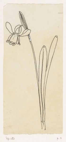 Curator: "Vliegenvangertje," or "Flycatcher," is an ink drawing created with pen by Willem Wenckebach. We estimate its creation occurred before 1893. Editor: It's delicate! Those fine lines... It feels almost like peering into a botanist’s private sketchbook, capturing some fascinating organic form. Curator: The Rijksmuseum, where this piece resides, indeed categorizes it as such. Wenckebach's choice to depict the sundew plant in this manner echoes its inherent duality. The sundew, beautiful yet predatory... Editor: Right? There's a subtle macabre undercurrent humming beneath the dainty lines. The plant appears quite serene and poised in a childish way, yet, each leaf ends in what appear like open hungry mouths. Curator: It is, after all, an exercise in trapping. It’s a silent drama played out on a miniature stage. Flies represent fleeting desires and this plant represents entrapment in our very human quest to get things and have them. Editor: Makes you wonder what flies represented for Wenckebach himself. Perhaps something irritating, worth ensnaring on paper through obsessive mark-making? Did it bring him some sort of release to repeatedly stab these images on paper? It would me. Curator: It does spark speculation, doesn’t it? This personal symbolism links Wenckebach to a larger exploration of morality and the allure of the forbidden, but it remains quite personal and not overtly dogmatic. Editor: More like a wry observation. "Oh look," he seems to say, "another tiny tragedy unfolding, the pretty plant lures them with the false hope of sustenance... fascinating!" There is something ironic and detached in the way he renders his strokes to build this image. Curator: Absolutely. Thank you, Editor, for offering your unique view! I always appreciate hearing a fresh, personalized read, contrasting the broader symbolism in artwork analysis. Editor: The pleasure is all mine! And I, in turn, am grateful to have a richer grasp of Wenckebach's Flycatcher now!
