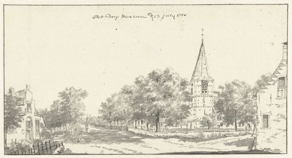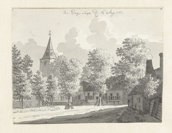 Jan de Beijer made this pen drawing, Dorpsstraat te Leersum, in 1756. De Beijer was part of a tradition of topographical artists, who documented cities, villages, and landscapes. This particular drawing captures the Dutch village of Leersum with a stark realism, typical of the 18th century. It invites us to consider the intersections of community and identity in rural life. The church, a prominent structure, symbolizes the central role of religion in community life. The drawing's emphasis on everyday architecture and the natural environment serves as a reminder of the close relationship between the Dutch and their landscape. While seemingly a simple depiction of a village street, it subtly reflects the values and social structures of the time. It prompts us to reflect on how places shape collective identity and individual experience.
