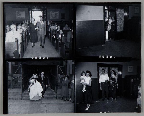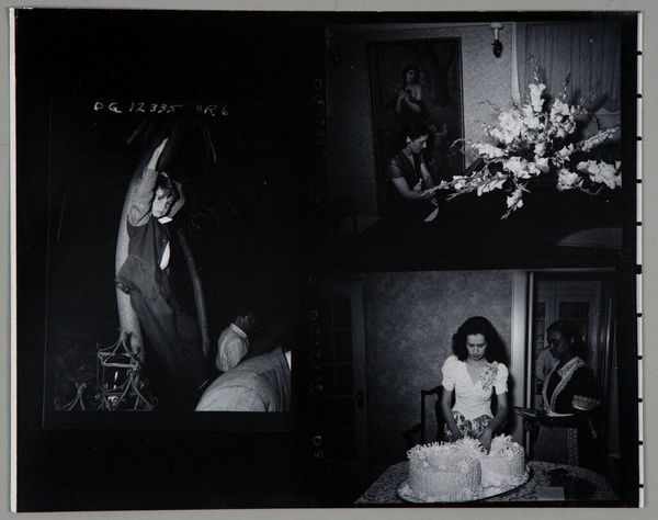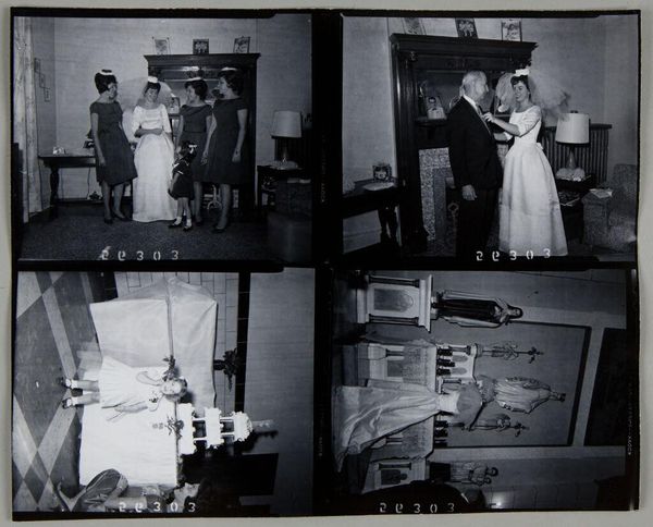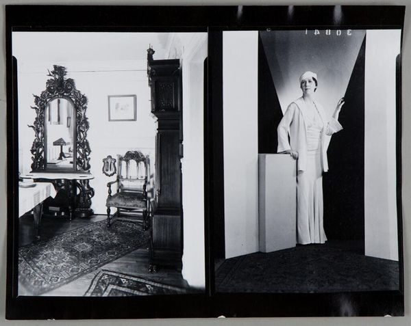 Editor: Here we have an untitled photographic work by Martin Schweig, with two portraits sharing one print. One is of a woman in a lacy dress; the other is a father with his two daughters. There’s something so formal and posed about them both. What do you make of it? Curator: Well, isn't it fascinating? The way these separate moments are stitched together, like echoes in a family album. I get a sense of performance, don’t you? They are trying to evoke the timeless glamour of the 30’s, despite the mundanity of it all. Editor: I see what you mean. There's a disconnect between the staged setting and the true candidness. Curator: Exactly! And isn't that the funny thing about family photos? They're meant to capture a truth, but they’re always just a tiny, curated sliver. I leave this with a sense of warmth and nostalgia, I hope you will too.