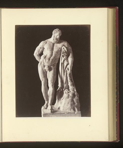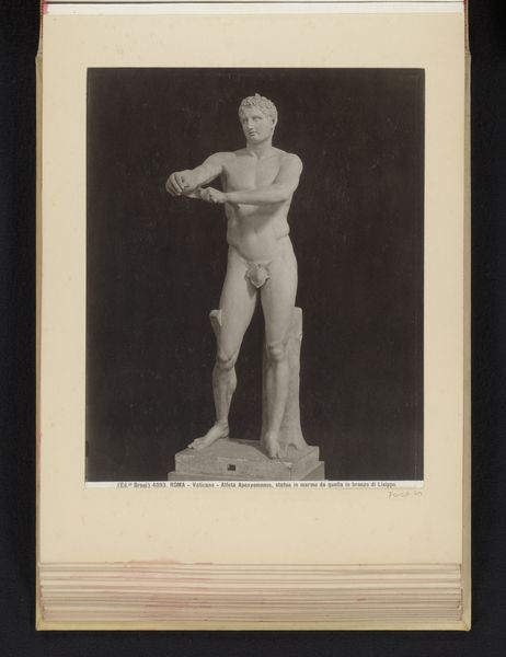 This is an anonymous photograph of a sculpture, 'Sculptuur van de rustende satyr in de Capitolijnse Musea te Rome, Italië'. The interplay of light and shadow across the satyr's form suggests movement, a paradox given his resting pose. The composition is dominated by the figure of the satyr, his contrapposto stance creating a dynamic yet balanced form. The tree trunk acts as both a support and a visual anchor, grounding the figure within the frame. The anonymous photographer uses a restricted tonal range, emphasizing texture and form over vibrant colour. Consider how the photograph captures and reframes the classical sculpture. The photographer manipulates the play of light and shadow to transform a three-dimensional object into a two-dimensional image, subtly altering our perception. In this sense, photography, with its capacity to fix and frame, invites us to question how we perceive and represent reality.