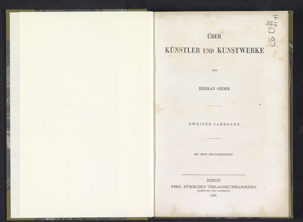 Curator: At first glance, this looks like a fairly straightforward document—but the muted green and carefully arranged typography give it an unexpected elegance. Editor: Indeed. What we have here is the cover for "Mathematische und naturwissenschaftliche Mittheilungen aus den Sitzungsberichten der Königlich Preussischen Akademie der Wissenschaften zu Berlin," or, roughly translated, "Mathematical and Scientific Reports from the Proceedings of the Royal Prussian Academy of Sciences in Berlin." This is Heft IV from April 1884. Curator: So, it’s essentially a collection of scientific papers presented to the Prussian Academy of Sciences? The typographic layout feels very much in line with the period, with that almost gothic feel despite being distinctly modernist. There’s a stark order to it, wouldn’t you say? Editor: Absolutely. This was a period when printed material carried tremendous authority; that tightly structured text embodies the seriousness and objectivity that scientific discourse aimed for. The borders too evoke a sense of established institutional tradition. Curator: Those small, ornate border details add a touch of understated embellishment that elevates it beyond pure functionality. It is more than just delivering information; it gives the information significance, authority even, through symbolism. It reflects how scientific knowledge was viewed – a key to understanding the universe’s hidden order. Editor: You’re right, these details also served to legitimize and perhaps even to aestheticize scientific knowledge within society. Notice also that the very choice of a sans-serif font aligns it with the emerging aesthetic trends of modernism, pushing for clarity and rationality in design to mirror developments in science itself. It's an intriguing visual manifestation of evolving epistemologies. Curator: Precisely! And that interplay – the modernist simplification combined with subtle ornamental echoes of tradition, gives it a powerful resonance. One feels the weight of both scientific progress and cultural continuity in such a seemingly simple design. Editor: It makes one consider the layers of meaning conveyed in what was likely intended as a purely functional piece of print. Curator: Exactly! What we thought to be functional speaks of cultural identity and evolving notions of truth and knowledge. Editor: An academic volume unexpectedly revealing about the cultural landscape from which it sprang.