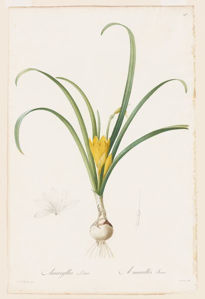 James Sowerby's watercolor and graphite drawing presents a detailed study of the Epidendrum Barringtoniae orchid. Dominating the composition are three elegant, tapering leaves, their verticality contrasting with the clustered, bulbous base. The cool greens of the leaves and base are punctuated by the warmer yellows and oranges of the delicate flowers. Sowerby's work operates within a structured framework of botanical illustration, yet it subtly disrupts the purely objective. The orchid's form, meticulously rendered, embodies a play between the organic and the geometric. Lines delineate the intricate venation of the leaves, while the composition itself suggests a stylized order, echoing the Linnaean systems of classification that sought to categorize the natural world. The artwork's formal qualities invite a semiotic reading. The orchid, as a sign, can be interpreted through its visual components. The vibrant colors and structured arrangement reflect broader cultural codes of scientific exploration and aesthetic appreciation. The orchid becomes not just a specimen but a symbol of nature's beauty. In its careful rendering, Sowerby engages with ideas of representation, perception, and the human desire to classify and understand the natural world.