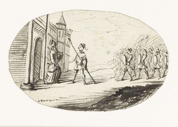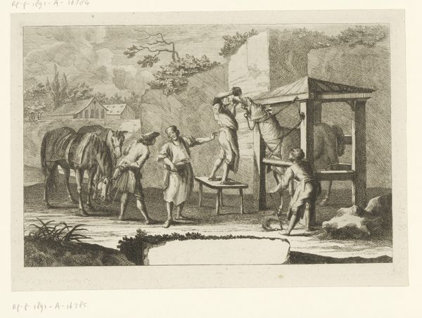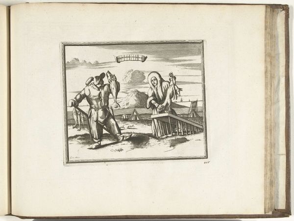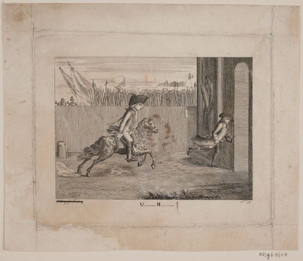 This print, made by an anonymous artist, presents a scene laden with political commentary. The central image features two figures pulling a cart, evoking the idea of forced labor. The cart carries a figure with a smoking object on their head, perhaps symbolizing a volatile or explosive situation. Consider how the act of pulling, a motif found across centuries in various guises, from ancient Egyptian depictions of slaves to Renaissance allegories of servitude, speaks to power dynamics and the subjugation of one individual or group by another. This resonates with images of Atlas bearing the weight of the world, or Sisyphus eternally pushing a boulder. Such visual echoes stir within us a deep, perhaps subconscious, understanding of burden and oppression. The image taps into collective memories of social hierarchies and struggles for liberation. This print, therefore, is not merely a snapshot of a particular moment, but a node in a complex web of cultural and historical meanings, revealing the cyclical and evolving nature of power and resistance.