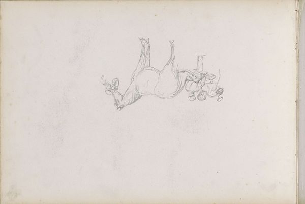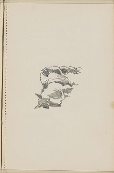 This is "Zittende man," a graphite drawing by Cornelis Springer. Here, the figure of a seated man comes alive through the sheer virtuosity of line. Look closely at how Springer uses the quick, fluid strokes to define form and texture. The hatching and cross-hatching create a sense of depth and volume, giving weight to the man’s clothing and body. The composition, while simple, directs our eye to the subtle nuances of posture. The man's relaxed pose, supported by a cane, suggests contemplation or rest. Springer masterfully employs the economy of line to suggest not just the man’s physical appearance, but a fleeting moment of introspection. In this way, the drawing transcends mere representation. The sketch embodies a profound engagement with the semiotics of everyday life. It is open for re-interpretation, inviting viewers to bring their own perspectives to it.