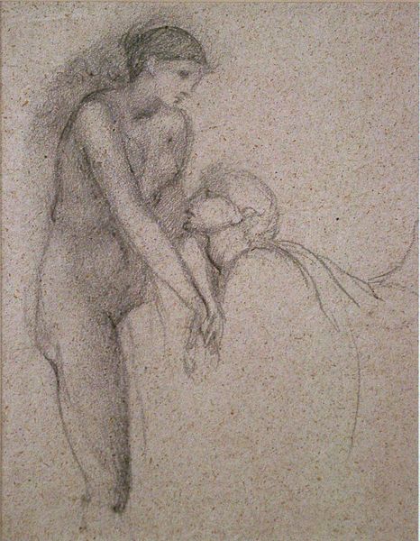 Editor: We’re looking at "Nursing Mother and Child," a pencil and charcoal drawing created in 1902 by Paula Modersohn-Becker. The simple lines create a really intimate, quiet moment. How do you interpret this work, especially considering the social context of motherhood at the time? Curator: That’s a great question. Modersohn-Becker was working in a period of immense social change, and her depiction of motherhood departs quite noticeably from the idealized versions so prevalent at the time. Look at the mother's face – there's a certain plainness, almost a directness to her gaze, even though it is just suggested by the pencil strokes, avoiding sentimentality. What do you think that signifies? Editor: Maybe it's about grounding motherhood in reality, depicting the experience rather than a romantic ideal? There's a sense of work, of physicality, which challenges conventional expectations. Curator: Exactly! It’s a fascinating move, given the era’s social constraints. This unvarnished representation pushes back against the prevalent patriarchal view of women solely as passive, nurturing figures. Instead, it suggests a shared humanity, with the mother not above or outside daily life, but intrinsically part of it. How might the simple medium -- pencil and charcoal -- contribute to that effect? Editor: It makes the scene feel approachable, relatable. It feels like an everyday moment that anyone could capture, reducing the gap between the viewer and the subject. Curator: Precisely! Modersohn-Becker uses humble materials to elevate the ordinary and make a statement about the value of the lived experiences of women. It compels us to re-evaluate what is deemed worthy of artistic representation. Editor: I hadn’t considered how much the artistic choices reinforced the social message. It’s so much more than just a pretty drawing of a mother and child. Curator: Absolutely, and thinking about art in this way allows us to understand how it shapes, reflects, and challenges societal norms.