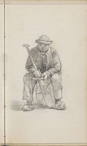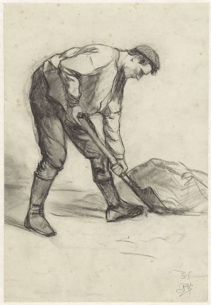 Adrianus van der Koogh made this pencil drawing of a man bending over with outstretched arms at an unknown date. The drawing appears to be a study of a working-class man, bent over in labor. Van der Koogh probably made it in the Netherlands, sometime in the early 19th century. The Dutch Republic had only recently been replaced by the Kingdom of Holland, as old social hierarchies came under pressure from new, revolutionary ideas. The artist's close attention to the man's clothing, posture, and the fall of light across his form suggests a desire to represent this individual with a degree of realism and dignity. Perhaps, this was a conscious effort to elevate the status of the working class in art. The Rijksmuseum's records might tell us more about Van der Koogh's artistic training, and the social circles in which he moved, helping us to understand the cultural forces that shaped this drawing. Art is never made in a vacuum, but always in response to a particular time and place.