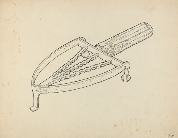 Filippo Porreca's drawing presents a stark, analytical study of a Pa. German Flat-iron Stand, rendered with graphite on paper. The composition is divided, offering two distinct views of the object. Above, we see a flat, schematic representation, while below, the stand is depicted with a degree of three-dimensionality, subtly implying volume and depth. Porreca’s hand meticulously maps the object’s intricate design. Note how the circular form of the stand is echoed in the heart shapes, creating an interplay of geometry and sentiment. The drawing’s formal clarity invites us to consider the semiotics of everyday objects. By isolating and examining this utilitarian item, Porreca prompts questions about value, craft, and the cultural narratives embedded within the mundane. It challenges the traditional hierarchies of art and artifact and offers a space to reconsider established meanings of form and function.