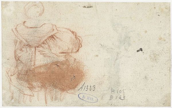 Editor: So, this is "Two Boys Leading a Sheep from Behind" by Harmen ter Borch, likely from 1651. It’s a pencil drawing. It's really quite simple in its composition. What do you see in it? Curator: I see a commentary on labor, on power dynamics. Consider the Dutch Golden Age—a time of immense economic growth built on colonial exploitation and trade. Children are often rendered innocently in art. But how innocent is this scene really? Who benefits from this labor? Editor: That's interesting. I just saw kids with a sheep! What makes you think about exploitation? Curator: Ter Borch was from a wealthy family; his gaze may not be innocent, nor ignorant. Notice how the boys' faces are obscured. This renders them anonymous, interchangeable perhaps. The sheep is central, the focus of their activity. How might we see the sheep as representing a commodity or even a colony? And these children, unwittingly complicit in the economic system? Editor: So you're suggesting that even in a simple genre scene like this, there are potentially hidden critiques of Dutch society? Curator: Precisely! And not just critique, but perhaps an acceptance, or at least an acknowledgement, of the deeply embedded social structures of labor in the 17th Century Dutch Republic. It asks us to look at seemingly mundane aspects of everyday life to discover the underlying politics. Is it really just kids with a sheep? Or is it about forced servitude? Is it about land ownership? Editor: I never would have thought to look at it that way. It’s amazing how much context can change a simple image. Curator: Exactly! It makes you reconsider the positionality of artist within the society and think about agency of his subjects. That is something I am taking away today. Thanks for bringing your open mind.