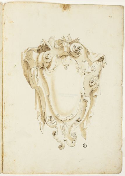Editor: This is Dana Bartlett’s “Shaving Mirror” from 1936, rendered in watercolor. I'm struck by how ordinary and domestic the subject is, but how ornate the frame is with its foliage of grapes and leaves. What symbols jump out at you in this image? Curator: I'm fascinated by the image of grapes, evoking ancient Roman imagery, Bacchus, god of wine, theatre, and fertility, reflecting life's pleasures and even excesses. Their presence on a shaving mirror introduces a certain irony. This juxtaposition speaks volumes. Editor: I see what you mean! A shaving mirror is about daily routine, almost the opposite of Bacchanalian revelry. So is this then a meditation on mortality or vanity? Curator: Perhaps! Mirrors themselves are rich symbols, not merely reflections of reality but also portals. Consider Snow White or Alice Through the Looking Glass. The mirror frame adorned with grapes may signify something deeper. Are we meant to savor each day? To indulge, even in the most mundane activities, in the beauty life offers? Editor: That's a beautiful way to frame it, to seek joy in everyday rituals. Do you think that placement near where one confronts one's self emphasizes some sort of deeper philosophical point about self-perception? Curator: Precisely. And what about the empty, pale reflection? What is really there in the looking glass. Perhaps our mortality. Or what we think is essential is really fleeting and temporal. Editor: I hadn’t considered the symbolism of the pale reflection. Thinking about how the iconography complicates an everyday object certainly enriches the work's meaning. Curator: Exactly! Each element in the drawing builds a narrative around routine and reflection.