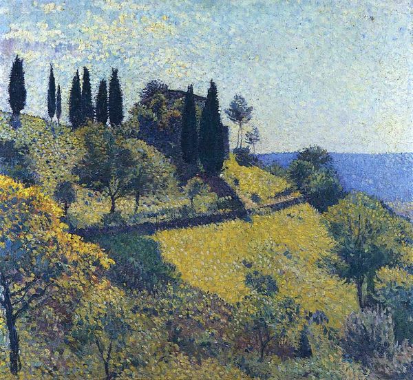 Santiago Rusiñol created "El Valle, Soller" with oil on canvas, employing a technique rooted in the late 19th-century painting tradition. Rusiñol masterfully manipulates the viscosity and texture of oil paints, using visible brushstrokes to capture the light and shadows playing across the landscape. The layering of paint creates depth, inviting viewers into the vista of Soller. The choice of oil paint allows for a rich color palette, from the deep blues of the mountains to the vibrant greens of the valley. This wasn't just a technical exercise, it was a deliberate aesthetic choice. The post-impressionist painters who Rusiñol emulated saw the everyday world through a lens of production and consumption. His artistic practice, while appearing traditional, was in dialogue with contemporary debates about labor and the changing landscapes of Europe. Understanding "El Valle, Soller" requires an appreciation for the materials and the artist's hand, challenging the notion of painting being separate from the world of work.