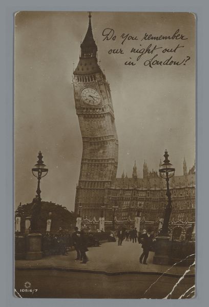 Curator: This albumen print, attributed to Römmler & Jonas, offers a "View of Westminster Abbey and the Houses of Parliament in London" sometime between 1880 and 1900. It’s currently held in the Rijksmuseum collection. Editor: Grey, mostly. Even the water seems stone-colored. And huge, those buildings; intimidating in their stateliness, reflecting, perhaps, England's control of its global Empire in that moment. What I appreciate is its feeling of reportage: a direct, unsentimental shot of power frozen in time. Curator: That realism, that directness, speaks to a shift in photography at the time. Albums such as this one played an interesting role in constructing public perceptions of national identity. Notice, too, how these albumen prints gained popularity as cheaper alternatives to other photographic techniques and their distribution networks helped to familiarize citizens with the symbols and architecture of nation-states. Editor: Nation-states and Empires, remember! And to your point, it IS a view. Staged. Deliberate. Even its dullness of affect makes it feel powerful; look, no sunshine for YOU. But, that’s my cynical side kicking in. As a piece of documentation, of social history, I'm curious: who owned the image, what other photos might be grouped in a set, a travel log of that period? It reminds me of those postcards one would buy during their travels, maybe it once served this function as well... Curator: Precisely! Albums of these pictures circulated widely, particularly amongst the growing middle classes with an appetite for consumer goods and images of a "grand tour". Editor: Do you suppose, viewed differently now, and as England shrinks in power... does it carry different reverberations, like looking at a fossil? Or does Westminster still hold its grandeur and impact? Curator: Perhaps both. The grand architecture continues to represent not just a history of political power but also the weight of cultural tradition. Looking at this, and knowing what’s happened since, is also a lesson in iconography and propaganda. It is interesting how historical documentation sometimes subtly, sometimes dramatically, shapes our understanding of national images over time. Editor: Hmmm... agreed! On that note, I feel a great respect for this stark capture. Makes me ponder on all that changes, and on what obstinately... stays.