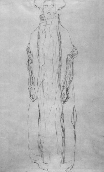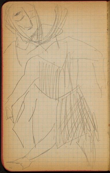 Ferdinand Hodler made this drawing of a standing draped figure with graphite on paper. The figure emerges from a ground of regular squares, like graph paper; we might think of this as an early example of art that integrates the grid. Hodler’s marks are provisional, searching and tentative, and although they describe the draped figure, they also describe a process. Look at the hatching around the head, neck and shoulders. Hodler’s markmaking is more insistent in this area, as if the character or identity of the figure is located there. The arms are strangely disconnected, the rendering of the hands especially awkward. The drapery is loosely indicated with a few long marks. We can sense Hodler grappling with the problem of how to represent a figure on a two dimensional surface. It reminds me of Cezanne and his struggle to arrive at something new. Both artists give us an opportunity to witness their process, thinking through drawing.