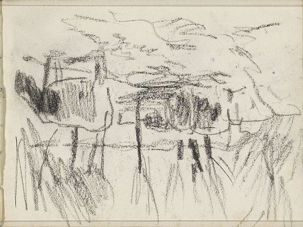 Editor: Here we have John Marin’s 1948 drawing, "New York from River," created with ink on toned paper. It's quite a lively sketch; the city almost seems to dance on the horizon. I'm curious, what's your take on this energetic depiction? Curator: Oh, Marin! He always captures the vital pulse, doesn’t he? For me, this piece vibrates with the city's relentless energy. Look how he renders the skyline with those frenetic, almost nervous lines. It’s not just a city; it's a feeling. He wasn’t interested in a precise rendering. Do you see the ways he seems to let the city breathe, even wobble? Editor: I do, and it makes me wonder, what do you think he’s trying to convey with this sense of movement? Curator: Perhaps a reflection of the city's perpetual change? New York is never still; it's a constant flux. Marin, in his poetic way, captures that impermanence. Think about the roaring forties in NYC! Boom times! This sketch is almost like a visual poem capturing the chaotic beauty of it all. It makes me wonder: does it resonate with your idea of the city today? Editor: That makes perfect sense! It actually does, especially considering how quickly things change here. I used to see the sketch as hectic. Curator: Precisely! And sometimes hectic IS exciting, yes? A true symphony. Marin just found a way to orchestrate it on paper. Editor: Absolutely. I see it with a new sense of depth now. Thanks for sharing your insights! Curator: My pleasure. Art’s meant to stir and simmer, no? Now go make your own beautiful chaos!