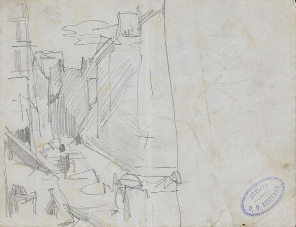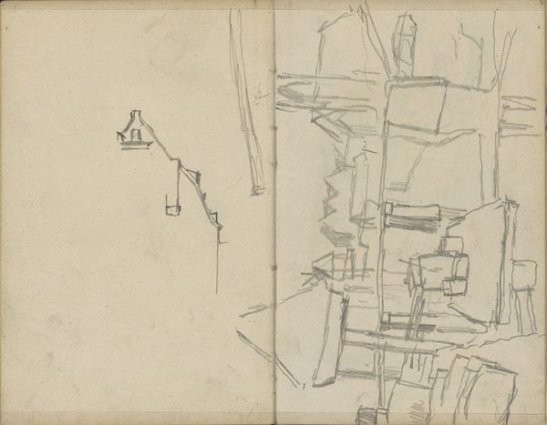 George Hendrik Breitner made this sketch of working men with pencil on paper. The composition is fragmented, almost like a series of snapshots capturing different moments of labor. The sparse lines and minimal detail emphasize the raw, physical aspect of the workers' actions. Breitner’s sketch employs a kind of visual shorthand, reducing figures to their essential gestures and poses. There's a semiotic reduction, where complex actions are symbolized through a few, carefully chosen lines. This abstraction invites us to consider the broader themes of industrialization and the human condition within it. The lack of detail doesn't diminish the scene, but instead amplifies the sense of anonymous, tireless work. Ultimately, Breitner’s sketch, with its simple lines, transforms a scene of labor into a study of form and movement. It serves as a reminder that art can find significance not just in elaborate detail, but also in the power of suggestion and the beauty of raw, unadorned expression.