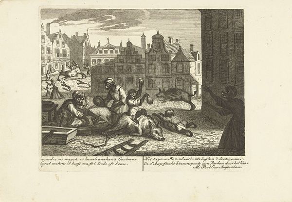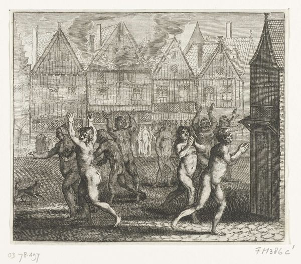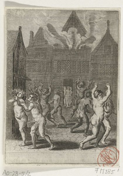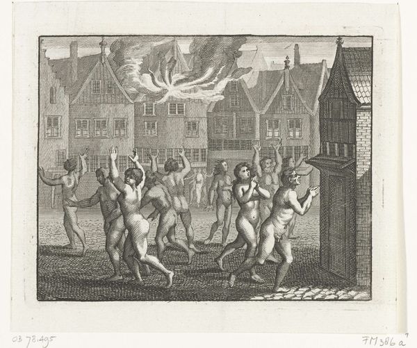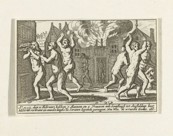 This anonymous print depicts a scene from 1535 in Amsterdam. It shows members of the Anabaptist movement running naked through the streets with their arms raised, while a building burns in the background. This event occurred during a period of extreme religious and social upheaval in Europe, and the Anabaptists were considered radical and heretical by mainstream society. They believed in adult baptism and communal living, which challenged traditional hierarchies. The act of public nudity was a symbolic rejection of earthly possessions and societal norms, but it also served to shock and challenge the established order. The fire in the background may allude to the persecution and violence faced by Anabaptists. The image captures a moment of intense religious fervor and social protest, and it reflects the complex interplay between religious belief, social identity, and political power. It leaves you to consider how people express their beliefs in times of social upheaval.