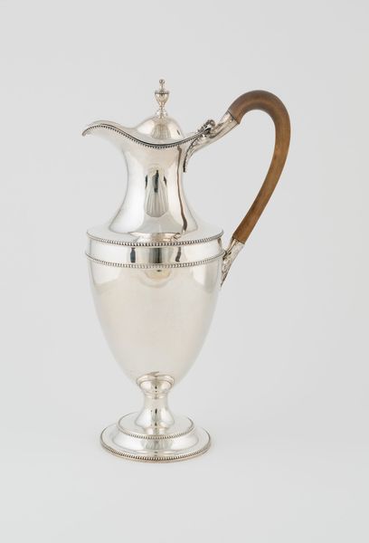Curator: Here we have a silver Creamer, crafted sometime between 1810 and 1825. The maker is unknown, but the object itself is a fascinating study in metalwork and social function, presently residing at the Metropolitan Museum of Art. Editor: Oh, it gleams, doesn't it? So pristine, almost austere. Like something you'd find in a Jane Austen novel, reserved for a particularly important tea party where social fortunes hang in the balance. Curator: Precisely! It's an artifact from an era deeply invested in rituals of consumption. The silver signifies wealth and status, and the design indicates a sophisticated engagement with the material—labor, trade routes, everything converged here. Editor: But beyond the economics, there's a quiet beauty. The curve of the handle, the way the light catches that lip...someone poured cream from this. Can you imagine the conversations it was privy to? All that sweet milky goodness, witnessing hushed gossip. Curator: That "someone" is precisely who I want to uncover more about: How did the artisan access silver, what tools did they use? How was labor divided in their shop? How did the form factor into contemporary tea-drinking rituals? Editor: Well, while you're diving deep into trade routes, I am imaging the pour – that careful tilt, the gentle glug... A very personal act, if you think about it. Each cup a small story. Curator: Indeed! Consider this object, then, as not just a vessel, but as a record, however partial, of that labor. A quiet monument to the socio-economic forces that shaped early 19th-century America. Editor: Hmm. You bring a certain perspective. Maybe its simplicity wasn't austerity but quiet optimism. Whatever it poured forth, from cream to dreams, it now embodies them both. Curator: Well said, maybe we should both ruminate more of this duality when considering everyday-life artwork like this object, since its function has vanished but it echoes the history within its manufacturing.