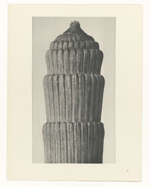 Karl Blossfeldt made this gelatin silver print of Equisetum Hyemale, also known as Rough Horsetail. With its careful, close-up framing and stark lighting, the photograph transforms ordinary plant specimens into monumental architectural forms. Look at the surface texture – it’s incredible how the light rakes across each ridge and segment, making them seem almost carved. The plant almost looks like a constructed object. I mean, this photo really gets under the skin of the plant, right? It's like the plant is performing, showing off its geometric skeleton. Blossfeldt printed in black and white, a choice that heightens the abstract qualities of the plant, distilling its form to pure shape and pattern. This image reminds me a little of Bernd and Hilla Becher, with their deadpan documentation of industrial structures. But Blossfeldt finds similar forms already existing in nature, blurring the line between the organic and the constructed. Nature's a process, after all. And so is art.